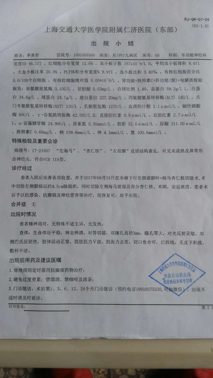 我姐姐身患药物难治疗性癫痫病和精神类疾病20多年,近年来身体情况每况日下,几乎生活不能自理。她的家庭在当地被评为贫困户,本身是个精神残疾人,有残疾人证明。今年在亲友的帮助下,筹钱去上海仁济医院(三甲医院)功能神经科做了开颅手术,术后恢复情况还不是很明了。
