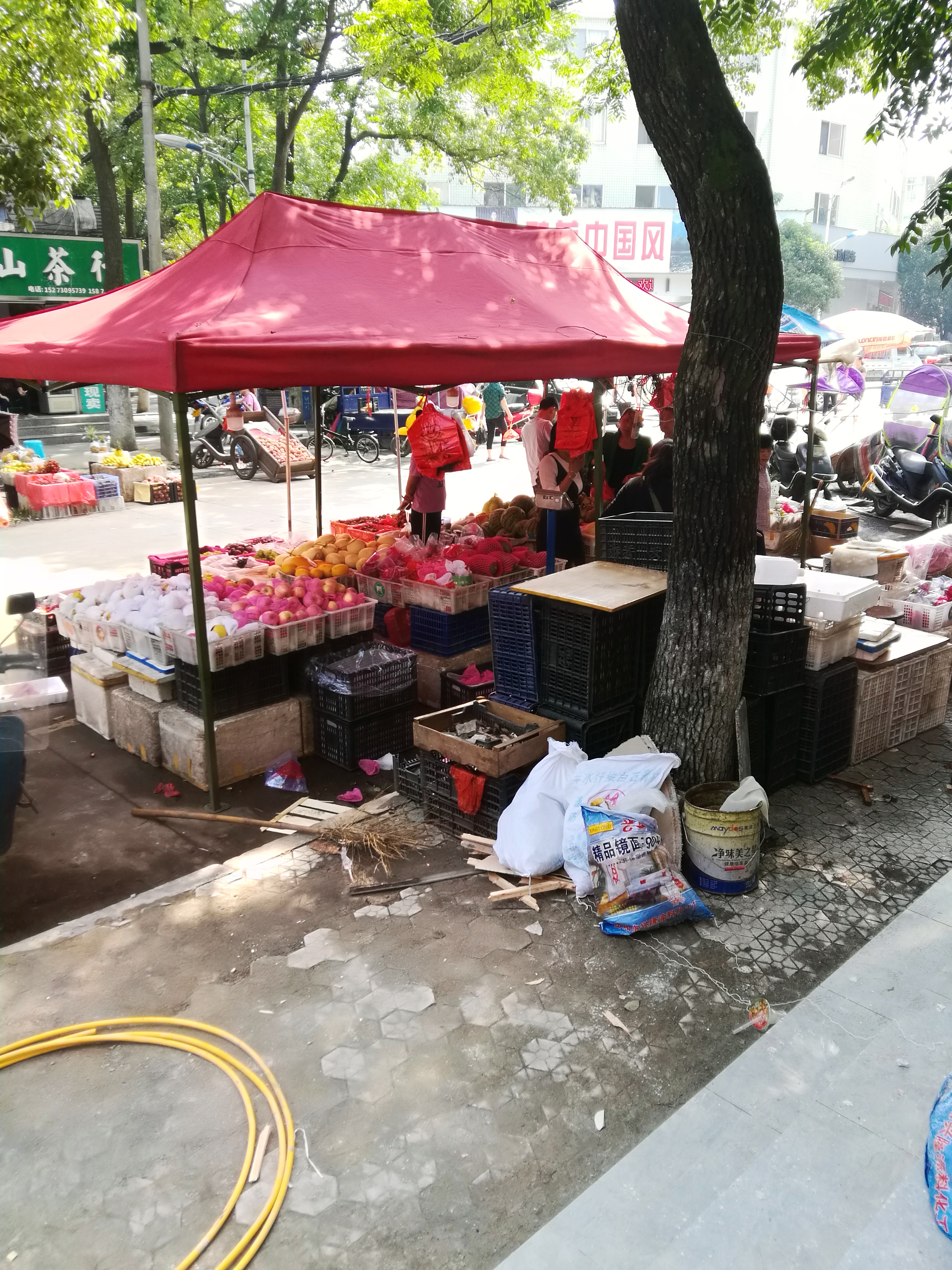 4、长岭社区中心城管加派了人员对该路段的管理,要求:一是水果摊贩搭建的帐篷向道路两边撤离,留出车辆、行人通道。二是城管队员加强现场巡查。