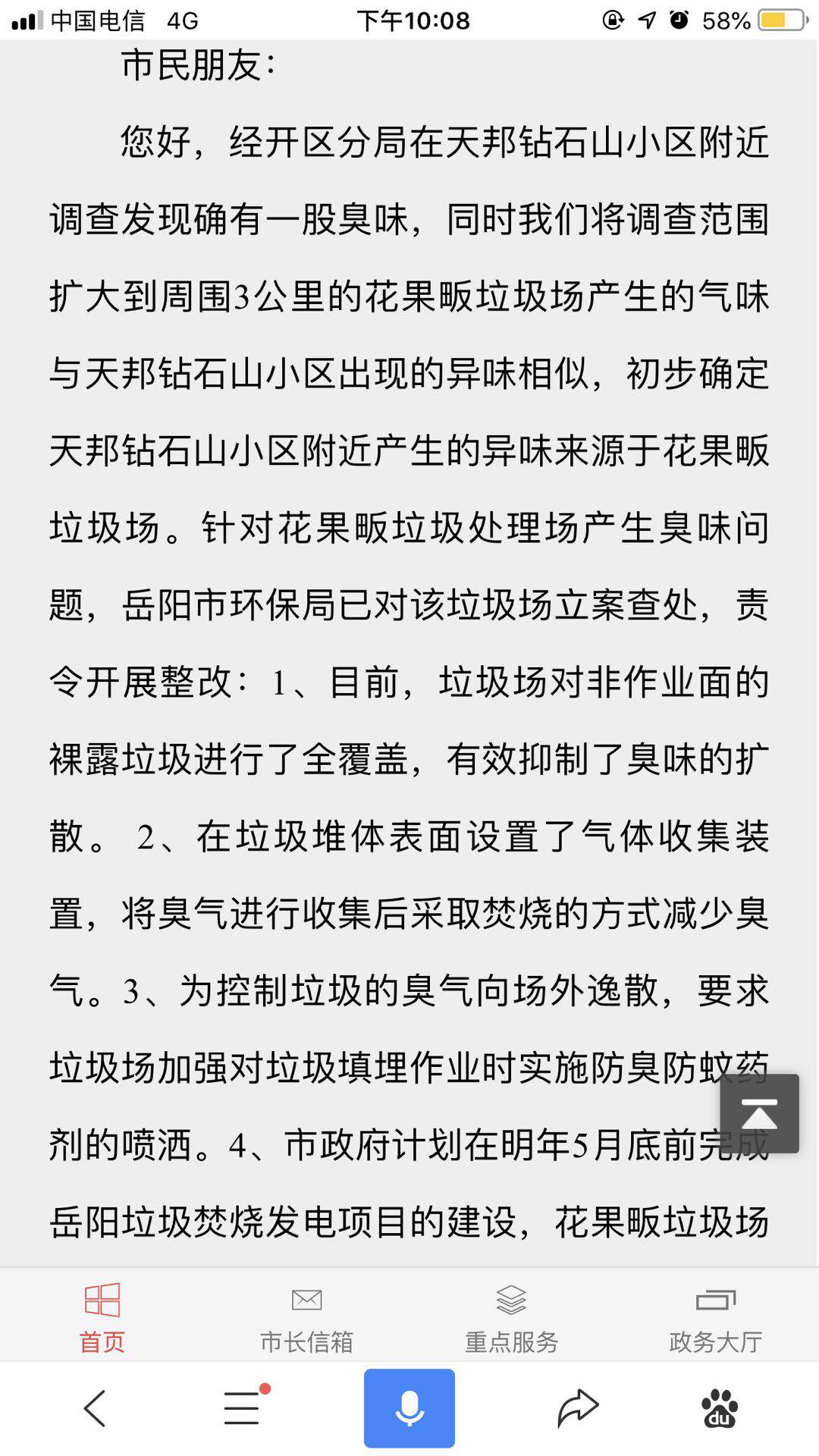 本人居住的地方位于岳阳市经济开发区天邦钻石山小区,校区目前为止已经有几千人人居住,临近小区也有全城热恋、唯益家园、白石岭居民点、白石岭小学、王家河小学。本小区现在已经全部住满,并且有大量的小孩和老人,不少老人和小孩在“臭味”的影响下出现了气管炎、肺部感染,严重的危害到了居民的健康。这里的居民一直都生活在“臭味”的阴影下,这臭味的出现已不是一天两天,而是长年累月,开始是全天都有,在市环保局的打击下。变成了政府机关下班之后才有,每到吃完晚饭,开始散步的时候。熏人的“臭味”就出来了。 而且“臭味”的出现异常的有规律,节假日没有,周六周天没有。只有在下班之后,开始出现到晚上到达高峰。“臭味”伴有严重的药味, 空气质量严重污染。之前市环保部门调查认为是花果畈的垃圾场的味道,市环保部门回复:今年5月份会彻底解决这一问题。但是五月已到,臭味的治理没有见到成效,反而变本加厉。小区业主讨论之后一致的认为这种“臭味”应该是旁边的制药厂,或者是化工厂的违规排放。