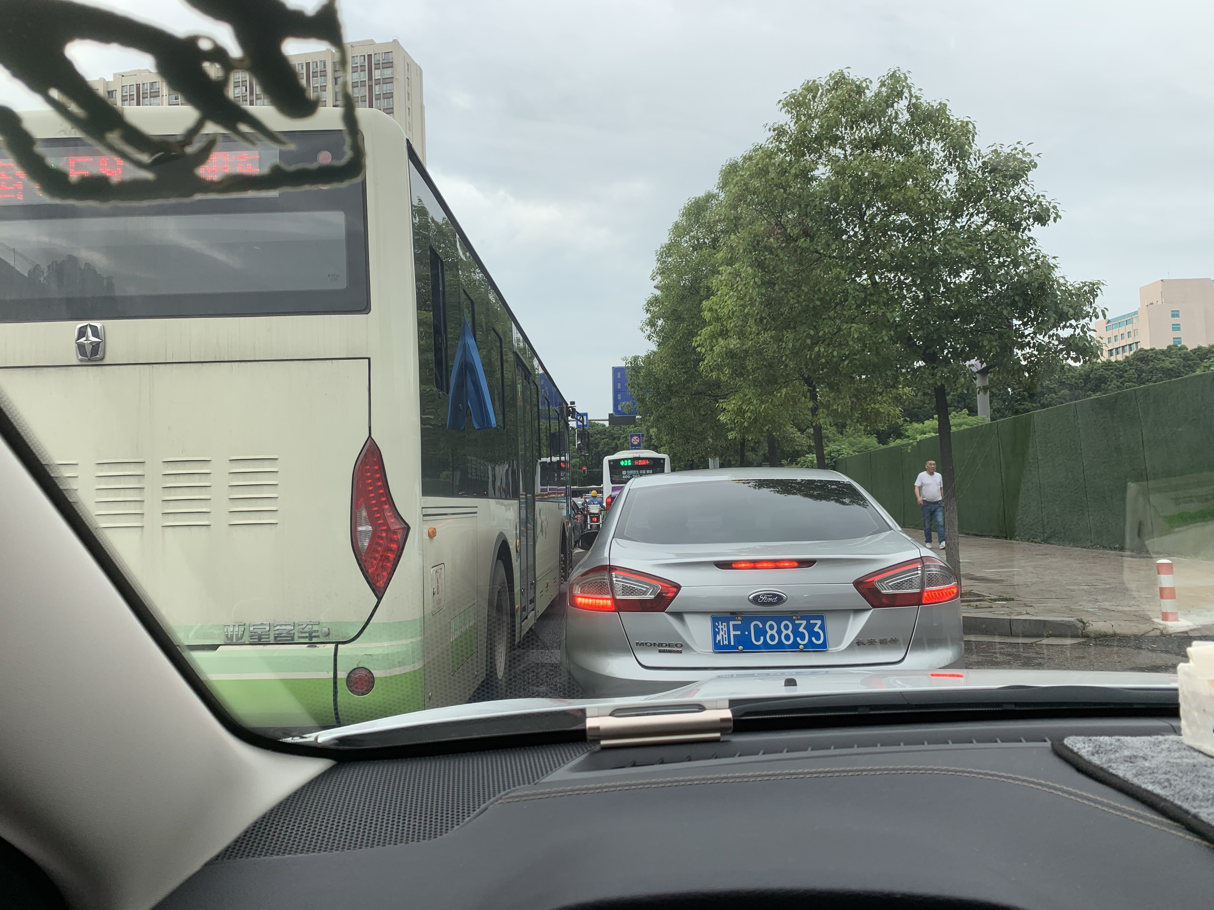 请整顿公交车乱占道堵塞交通的问题。今天(20190606)早上八点钟左右,正值上班高峰期,建湘路与金鹗中路交汇处由北往南路口,正常三车道被挤成了四车道,而且全部是左转弯的车辆,其中有几辆公交车(详见照片,右转弯和最右侧路口均有公交车),造成大量右转弯车辆无法通行,路口严重堵塞,该路口当时有交警同志在现场,也未制止。其中公交车由于体型大,堵住路口是主要原因,请公交公司和交警部门管一管,该路口规划三个车道,两条左转弯,一条右转弯,但是经常有左转弯车辆排队排到最右侧,公交车有诸多不文明行为,大家都是有目共睹的,希望公交公司加强内部培训考核和整顿,交警部门加大查处处罚力度。维护岳阳良好的形象,维护通畅的交通秩序。