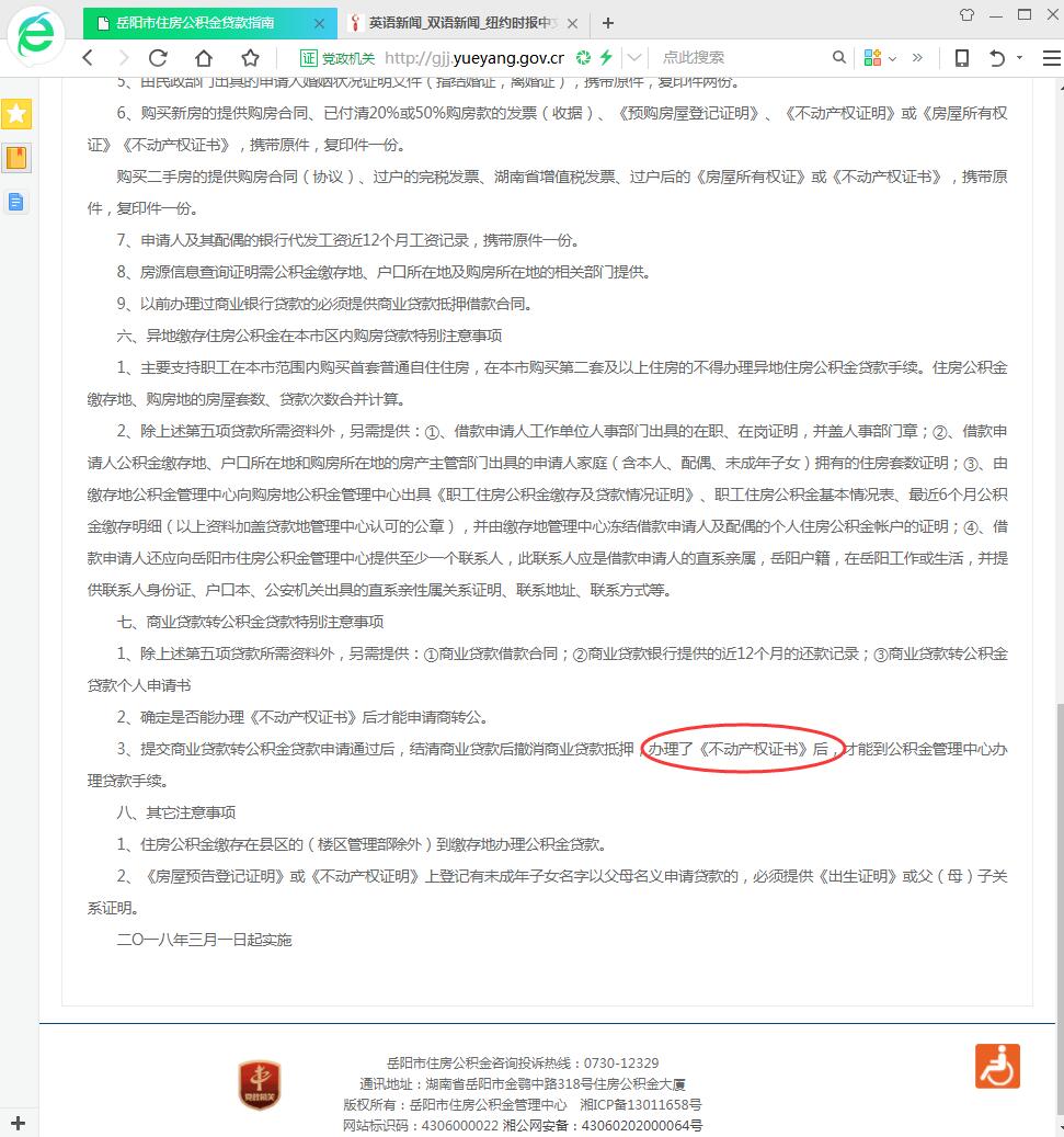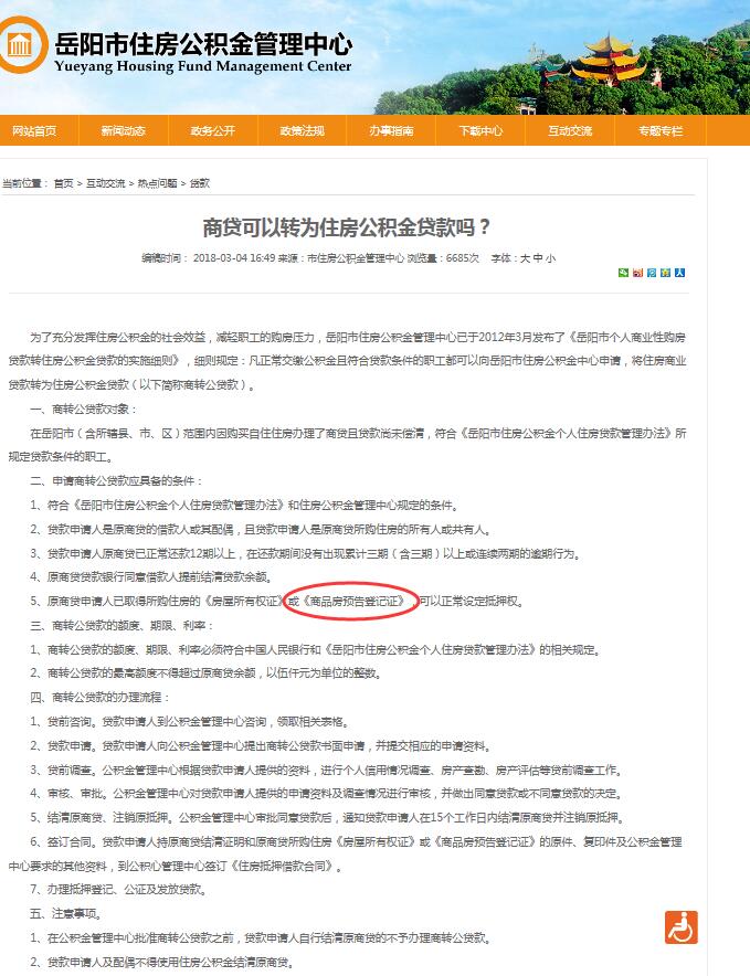 就您咨询的住房公积金事宜现予回复:根据《岳阳市住房公积金个人住房贷款操作实施细则》规定:原商贷所购房还不能办理《不动产权证书》的,必须要求原商贷所购房的《不动产权证书》办妥后才能办理商转公贷款。