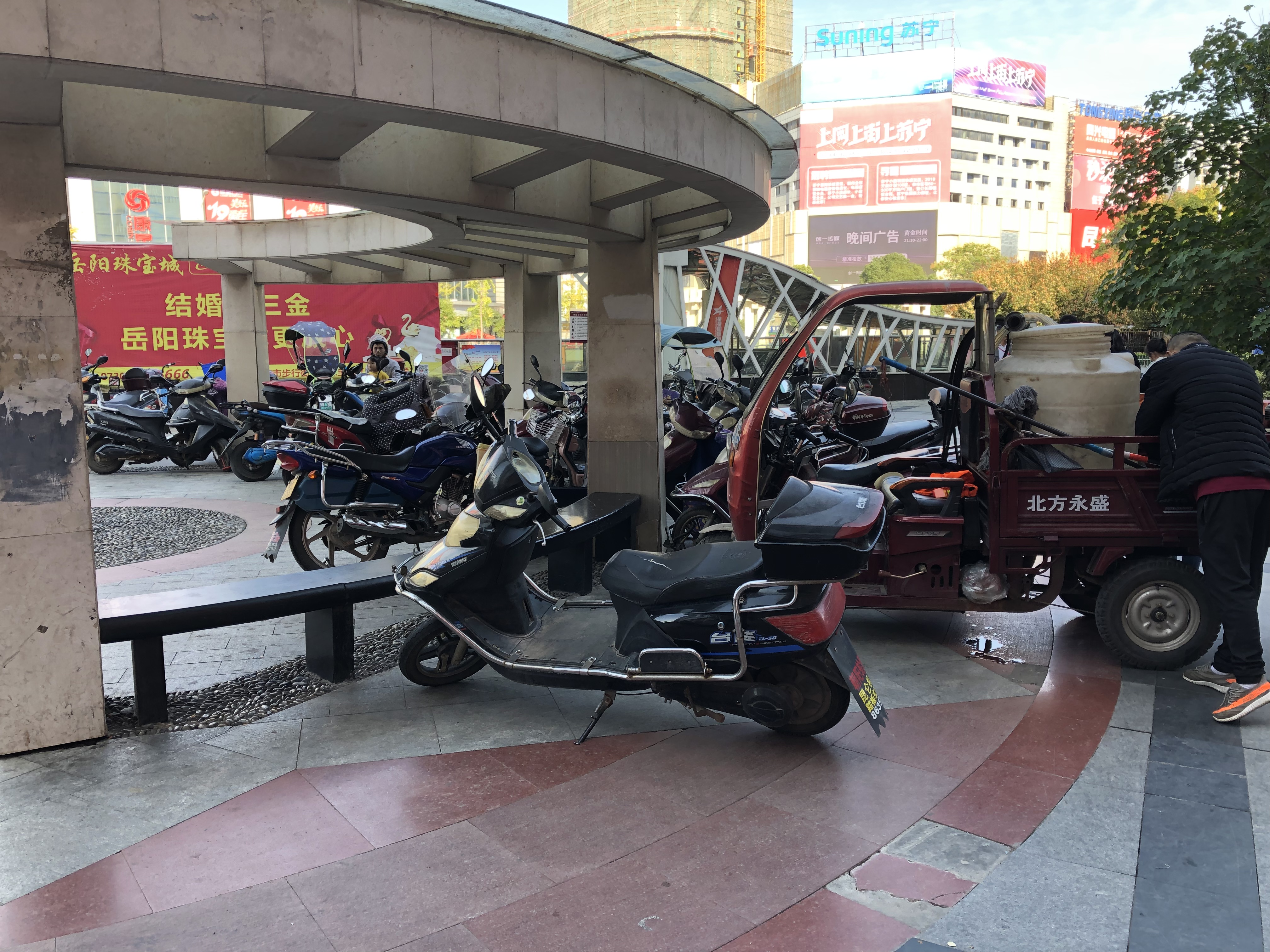 步行街广场被友阿国际广场搞得一塌糊涂三年多了一直无人敢管理,剩余的东端广场接着又成了社会停车场,仍然无人能管。