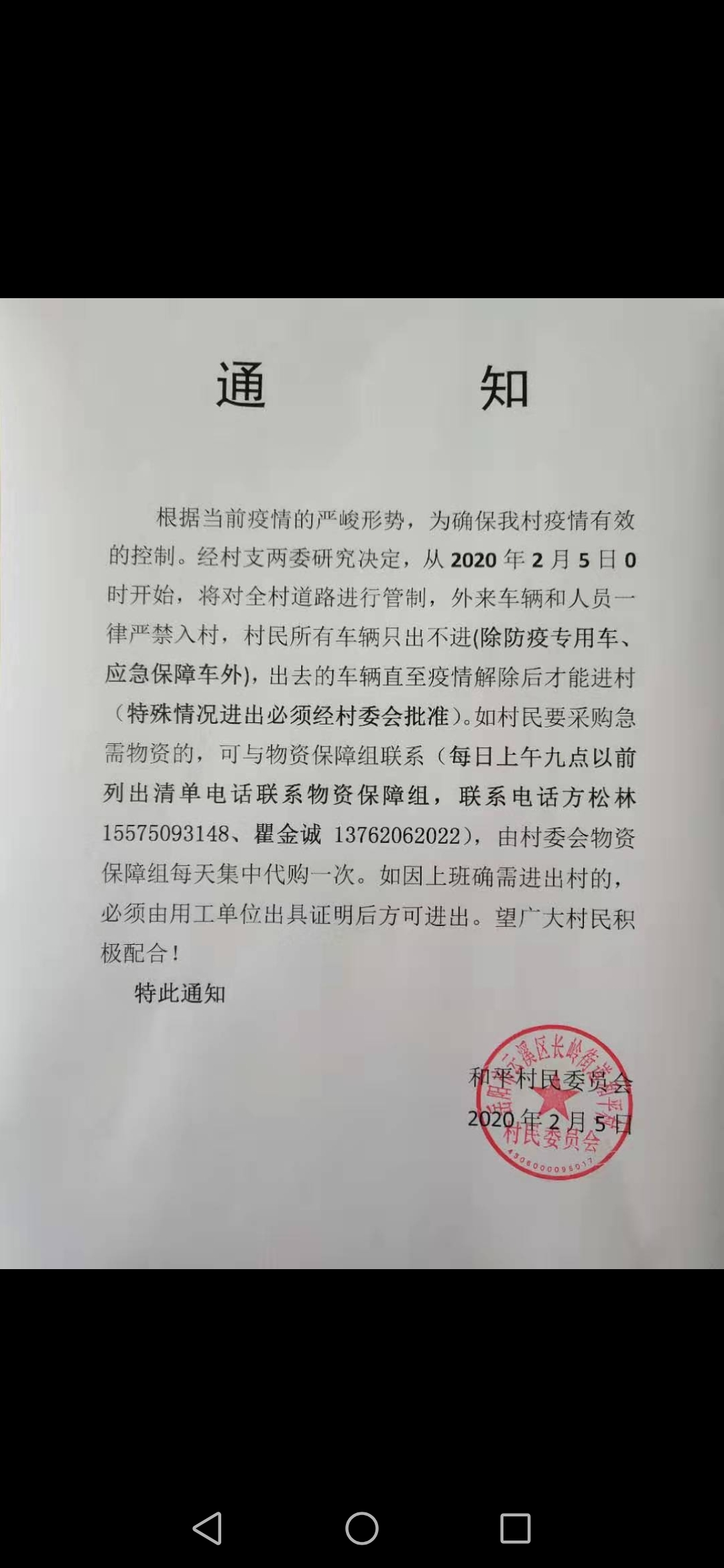 4、和平村已于2月8日下午三点拆除该村的设卡值守点。