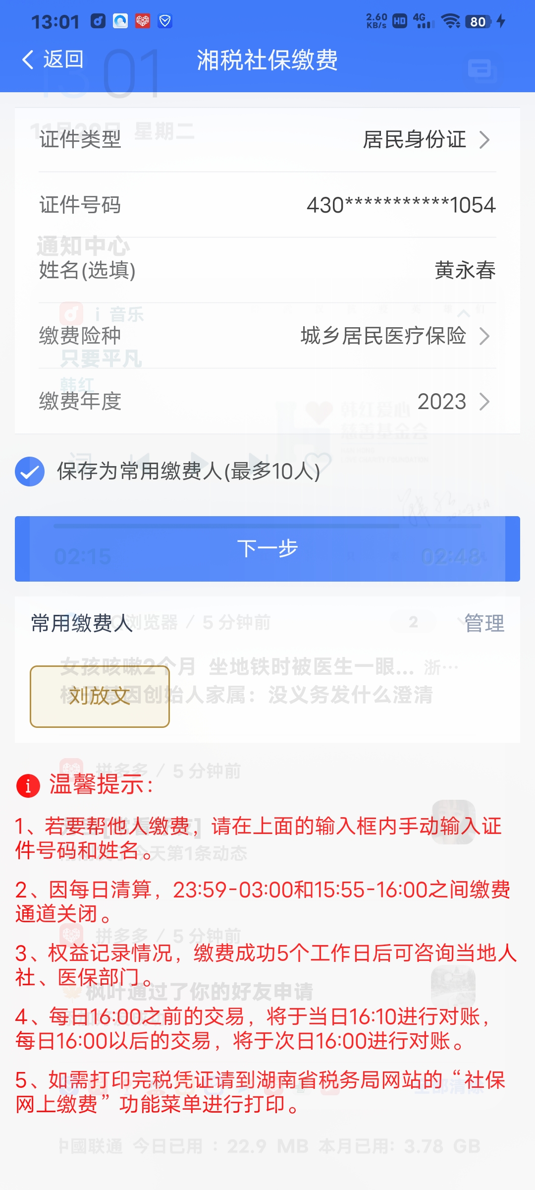 你咨询在湘税社保无法缴纳2023年的岳阳楼区城乡居民医保的问题?