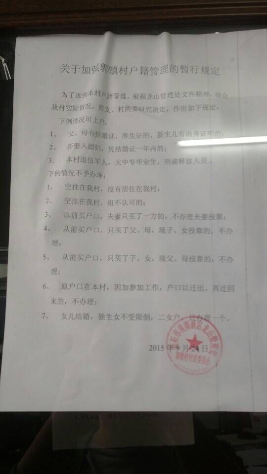 PS:我儿子出身证、准时证均齐全,而且也是一胎,附件为郭镇村入户相关文件。