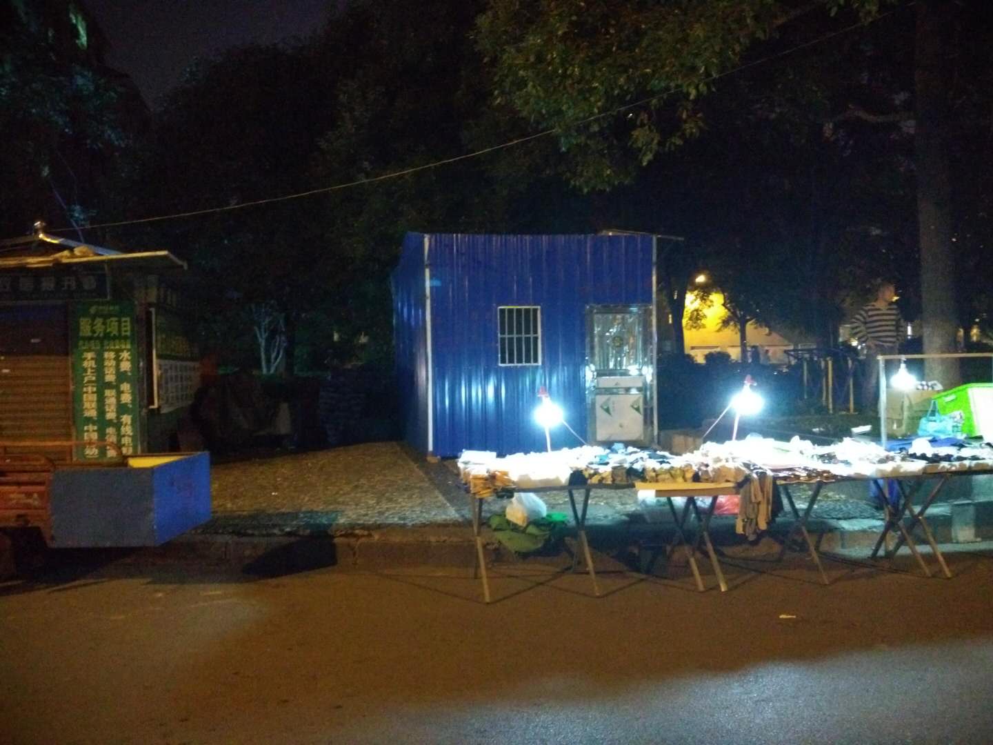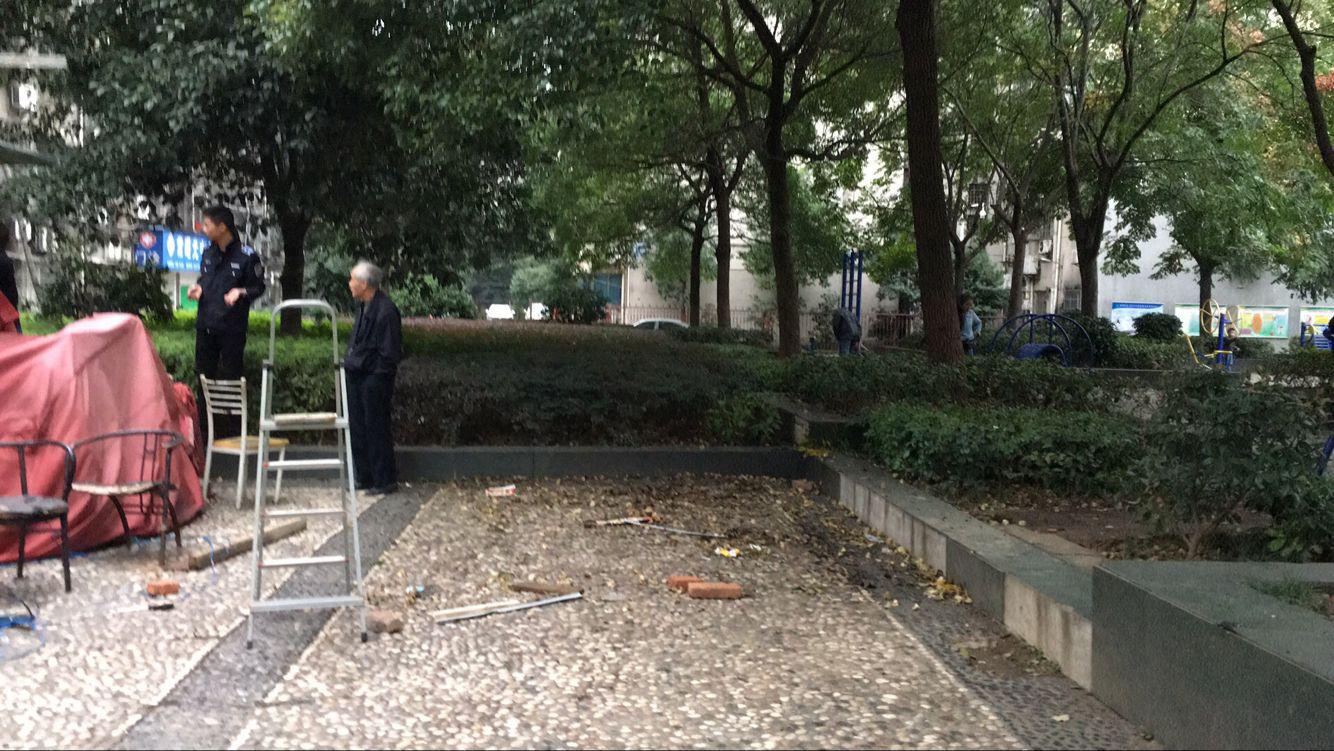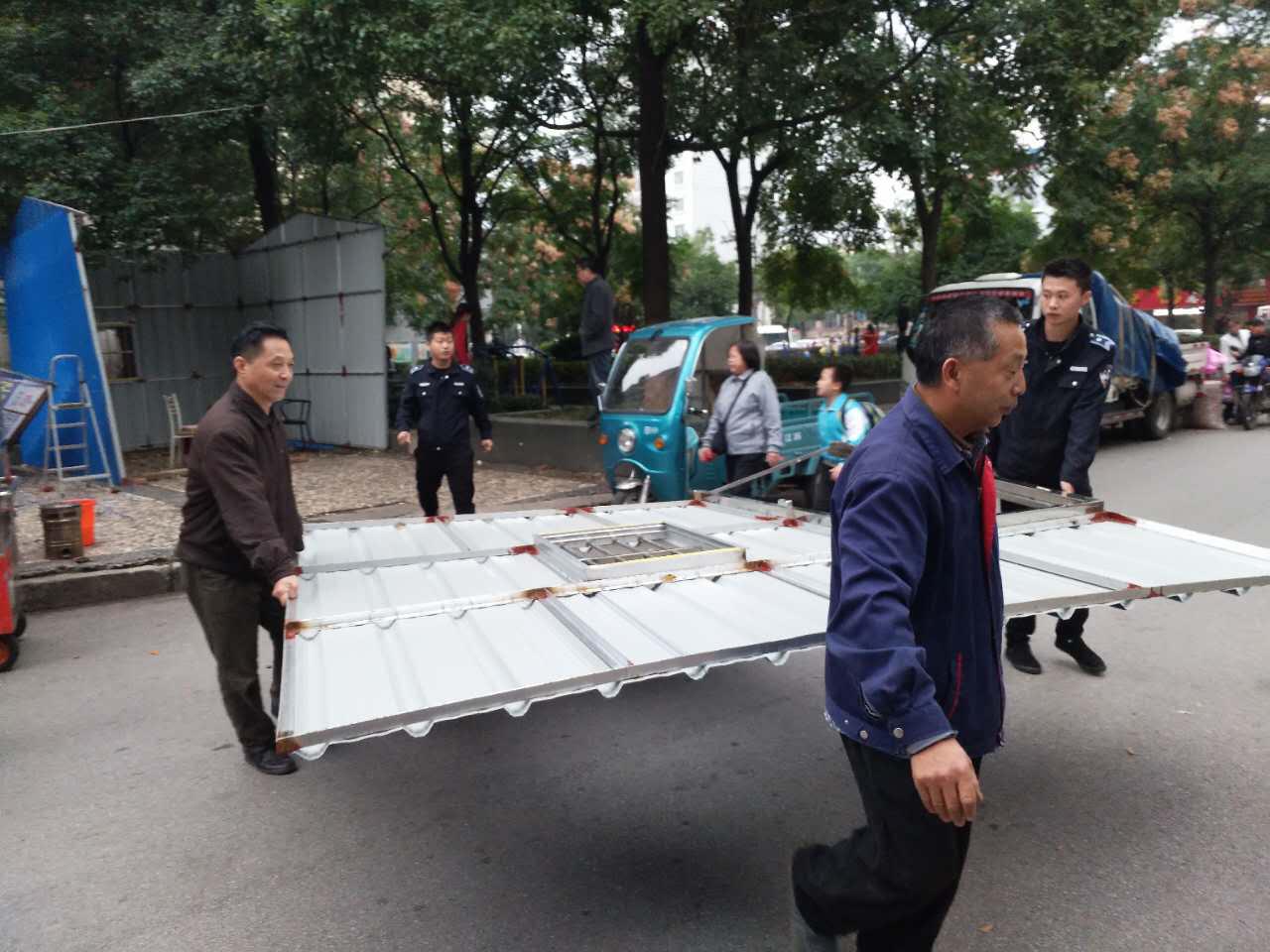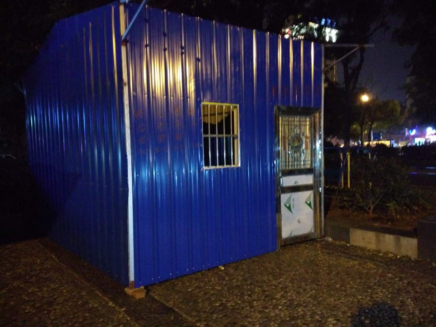 2017年10月7日星期六早晨,在民乐苑路与岳阳大道交汇处的小花园东南角,有人用瓦楞钢搭建一座临时小屋。